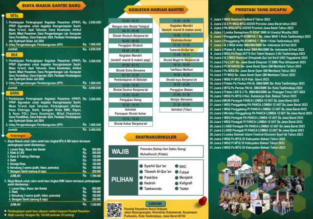 Selamat datang di website resmi Penerimaan Santri Baru Pondok Pesantren Nurul Hidayah Bojongnangka | Alamat : Kp. Bojongnangka RT. 03/02 Kel. Sukamenak Kec. Purbaratu Kota Tasikmalaya - Jawa Barat 46196